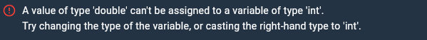 그래서 int가 아닌 double, var, dynamic 중에 바꿔주면된다