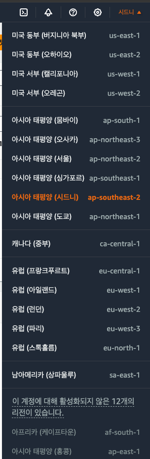 서비스들이 리전별로 나열되어잇고 어떤 서비스에 대해 공부하고 싶을 때 리전에 없는거 같으면 여기서 찾아볼 수 있다