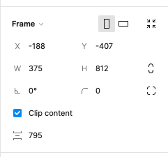 변경 전인 Frame를 선택하고 디자인 패널에서 Clip content를 해제 시 숨겨져있던 Bar들이 나오게됩니다