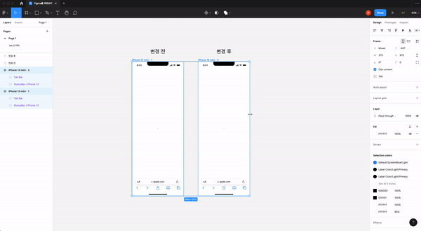 보통 앱 중에서 스크롤이 발생하는 앱도 많기에 Frame 사이즈와 목업 사이즈를 고려해서 만들어야 하는 경우가 있습니다