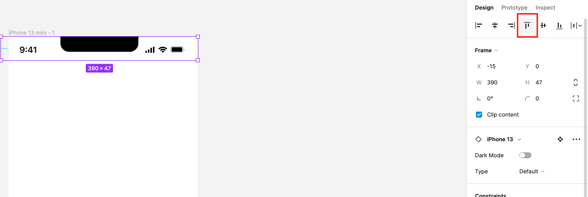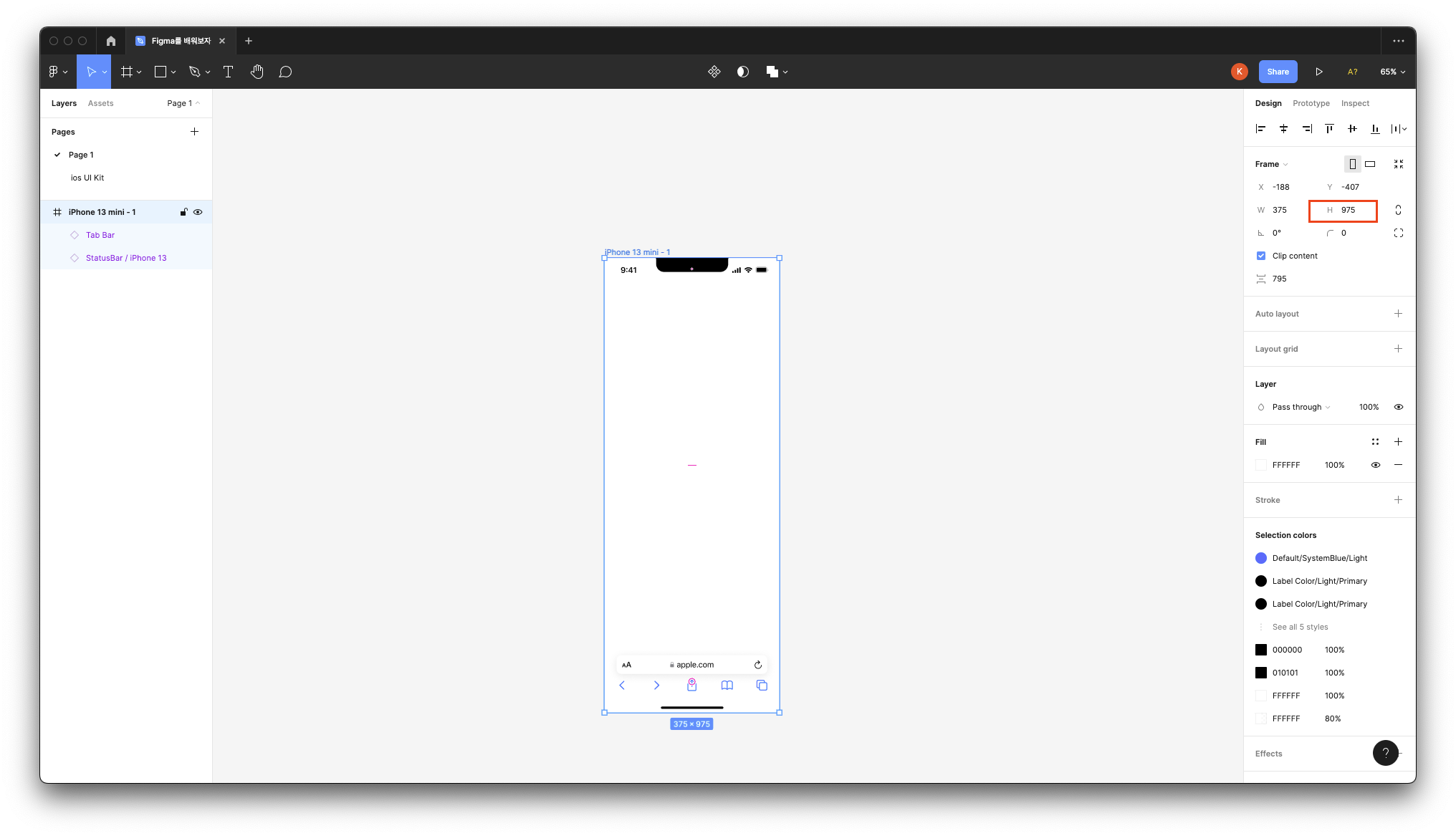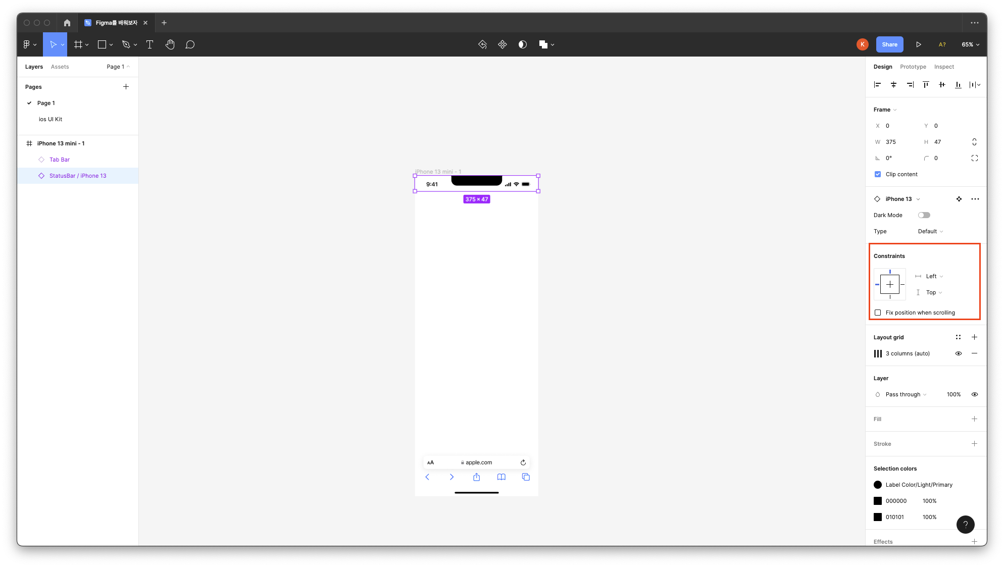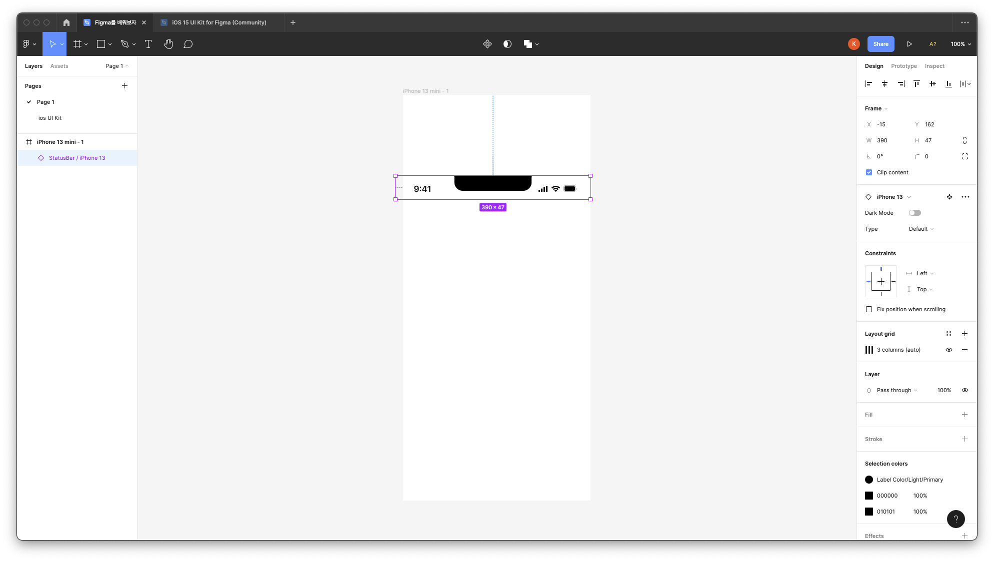 현재 프레임은 375 x 812이고 StatusBar는 390 이므로 375로 맞춰줍니다